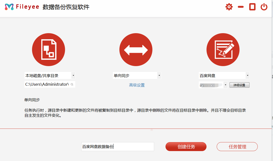 最后的“百度网盘备份”这是FileYee 比较有特色的功能,很多用户都是对于我们的百度网盘备份同步兴趣非常大,网盘中的数据进行备份,这样可以避免上传下载中因为速度的原因造成不便。