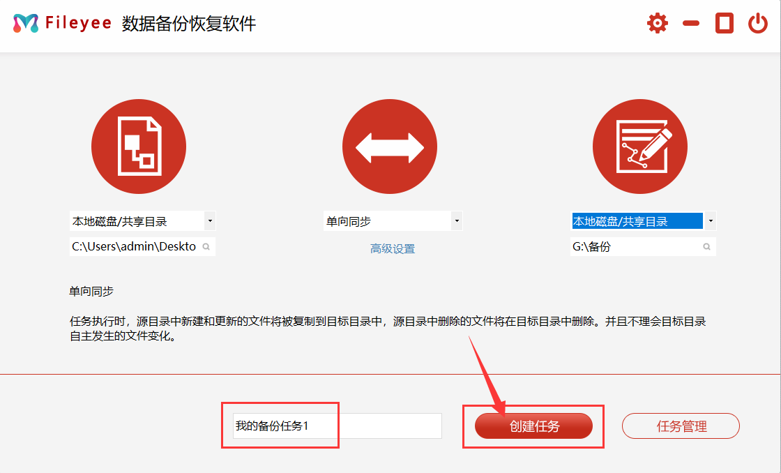 第四步,设置备份任务的名称,然后点击“创建任务”按钮,创建备份任务,成功后会自动跳到任务管理页面。