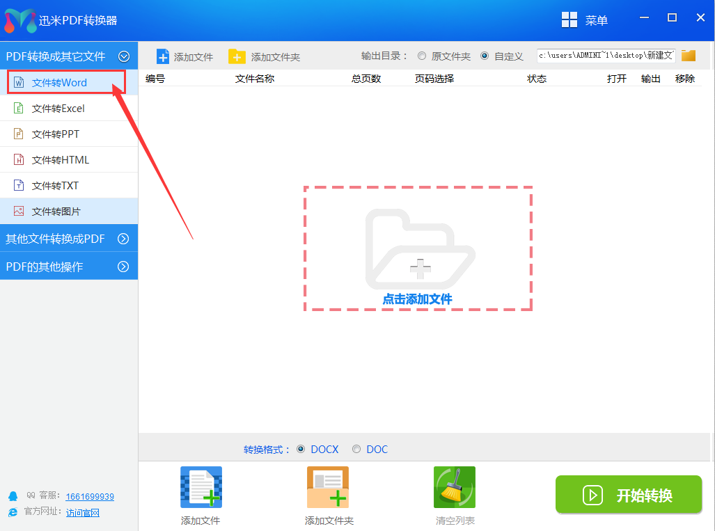 步骤1,打开迅米PDF转换器,在主界面的左侧功能中最上方找到并点击【文件转Word】,也就是将pdf转换成word的功能。