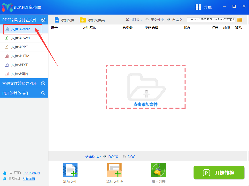 步骤1,打开迅米PDF转换器,点击选择左侧功能列表中最上面的【文件转Word】功能,从这里进行批量转换操作。