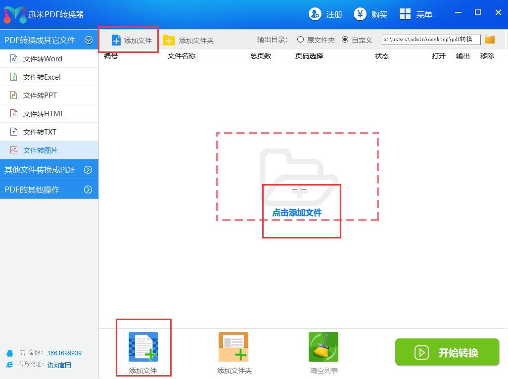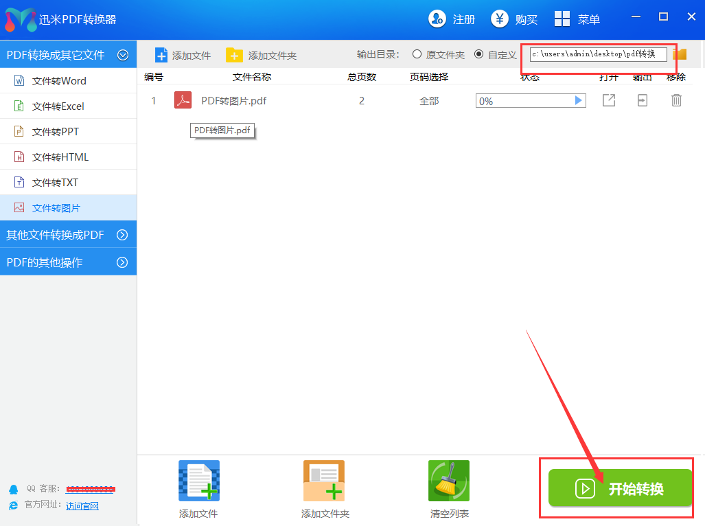 步骤1,打开安装好的迅米PDF转换器,界面的左边可以看到软件的所有功能,我们依次找到并点击【PDF转换成其他文件-文件转图片】功能。