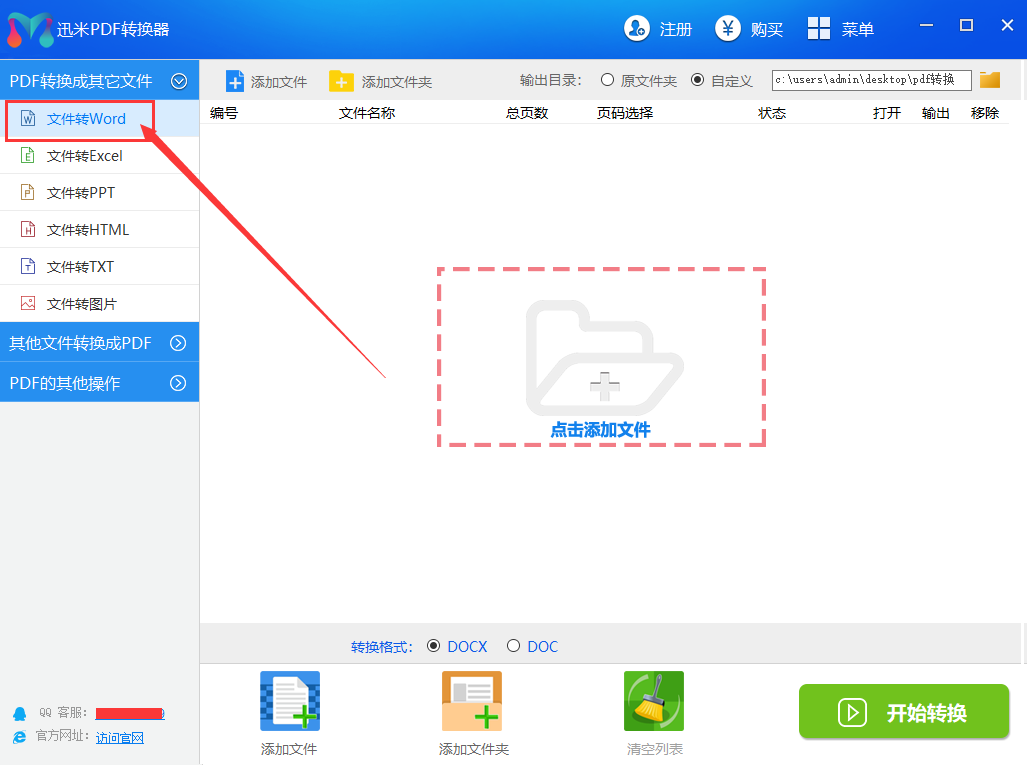 然后,将需要转换的PDF文件添加到软件当中,可以直接拖拽或者点击“添加文件”、“添加文件夹”菜单来实现。文件添加完成之后,可以再设置一下转换文件的保存目录。确认好没有其它设置需求的前提下,点击软件右下角的“开始转换”即可轻松将PDF转成Word了。