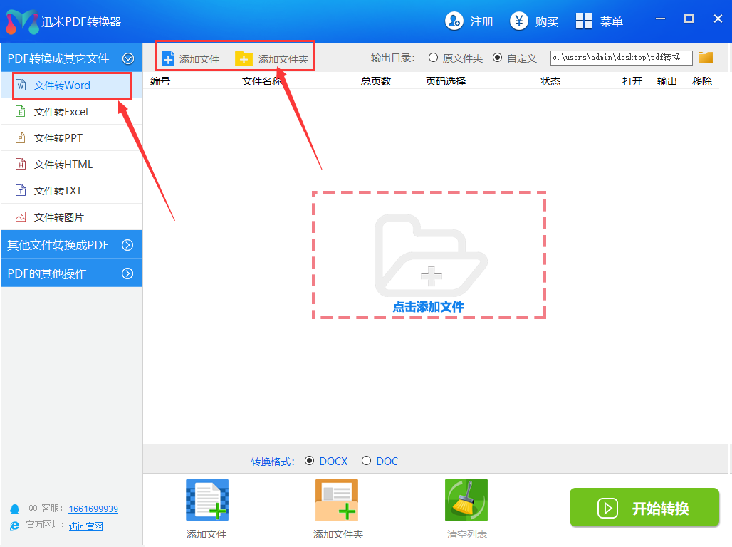 步骤1,下载“迅米PDF转换器”后安装打开使用,在左边依次点击“PDF转换成其他文件”中的“PDF转Word”选项。然后,将需要转换的PDF文件添加到软当中。可以直接拖拽到软件中,也可以点击“添加文件”或者“添加文件夹”来实现批量添加。