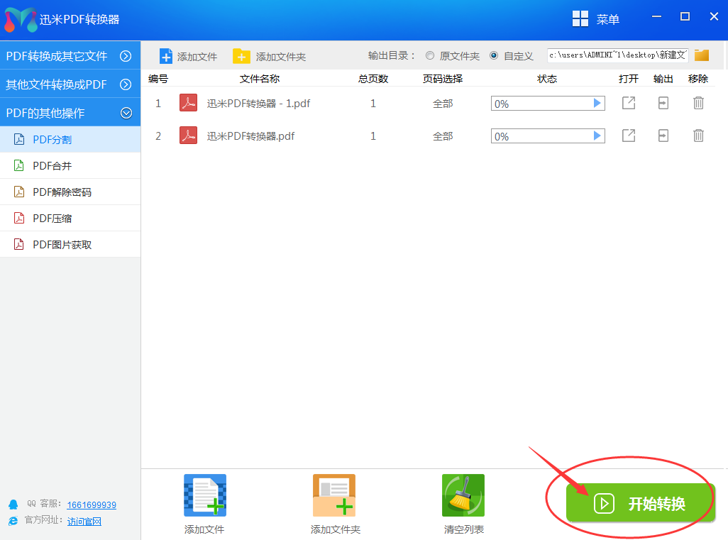 步骤4,点击右下角绿色按钮【开始转换】,这样软件就开启了执行PDF文件压缩的操作了,我们只需要等待完成即可。