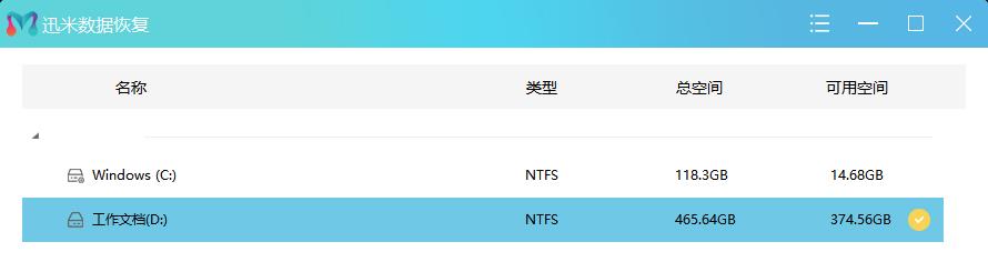 因为磁盘格式化还是比较严峻的问题,所以需要借助专业数据恢复软件,这里推荐大家使用迅米数据恢复软件,自行百度搜索关键词迅米数据恢复,操作非常简单,具体如下所示: